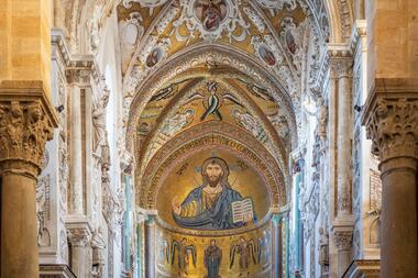 Ammiriamo lo stupendo mosaico di Cristo Pantocratore presente all'interno del duomo di Cefalù e spieghiamo i tre punti focali di questa opera, ricordando ai bambini che ogni parte costitutiva di un’icona è frutto di un ragionamento simbolico e che in questa ottica dobbiamo quindi leggerla.