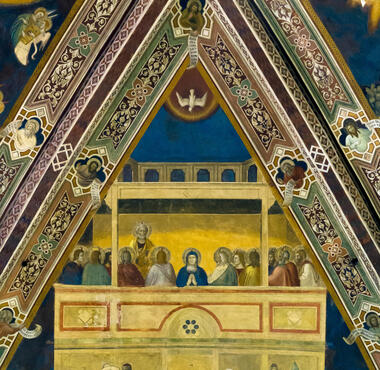 Arte e immagine Andrea Bonaiuti, Pentecoste La solennità della Pentecoste in pittura. Leggiamo insieme ai nostri alunni un quadro del maestro Andrea Bonaiuti dedicato alla solennità della Pentecoste, il momento in cui lo Spirito Santo investe i discepoli di Gesù.